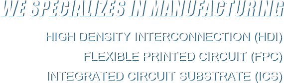Since 1998,Our factory have been committed to Printed Circuit Boards for our customers. We specializes in manufacturing High Density Interconnection (HDI),Flexible Printed Circuit (FPC) and Integrated Circuit Substrate (ICS). These products are widely used in the areas of networking and communications infrastructure, servers,computer , touch screen tablets,Phone, consumer electronics,artificial intelligence hardware, automobile ,medical and Aerospace.